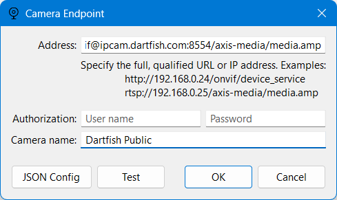 👉 Note that this feed is provided only for testing IP camera streaming in your Dartfish product.